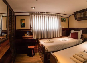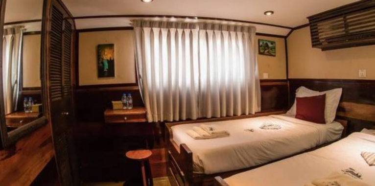 The Main Deck Cabins offer 6 cabins in total, each cabin has floor space of 12 sqm. There are Double beds, or Twin beds. Every cabin is fully equiped with standard facilities and mini bar. Cabin’s inside is designed in modern style, simple yet elegant. Private bathroom is also available in each cabin to ensure passengers’ need with hot and cold shower.
